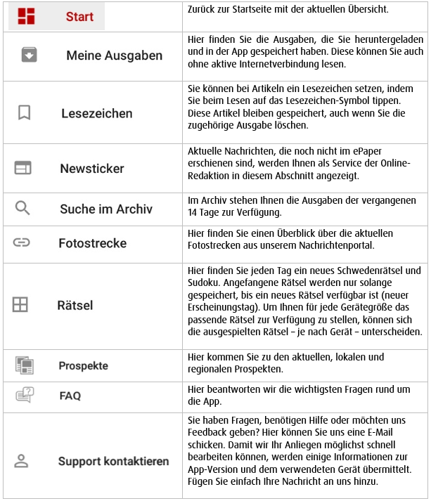 AUSGABEN: Oben links können Sie die von Ihnen abonnierte Lokalausgabe auswählen. Die App öffnet sich beim Neustart immer mit Ihrer zuletzt ausgewählten Ausgabe.